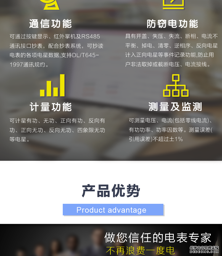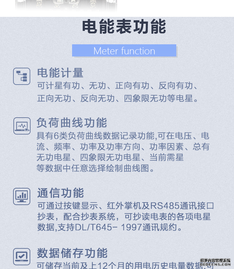 - 主要功能:有功,功率因素,有功功率,電壓,電流,載波