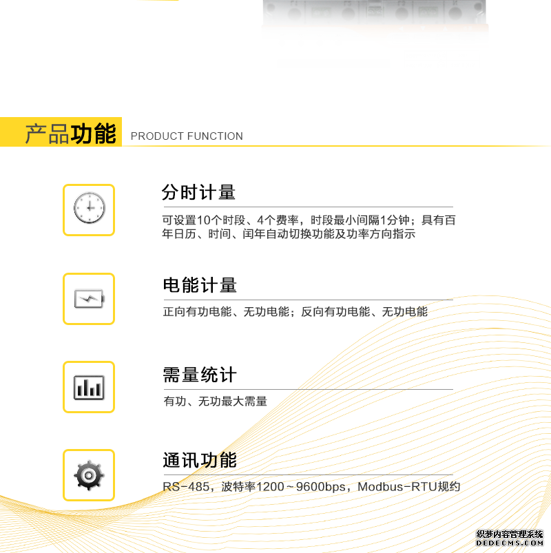 - 主要功能:有功,功率因素,有功功率,無功功能,電壓,電流,需量