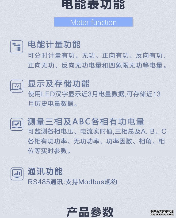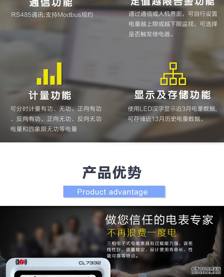 - 主要功能:有功,功率因素,有功功率,無功功能,電壓,電流,事件報警,需量