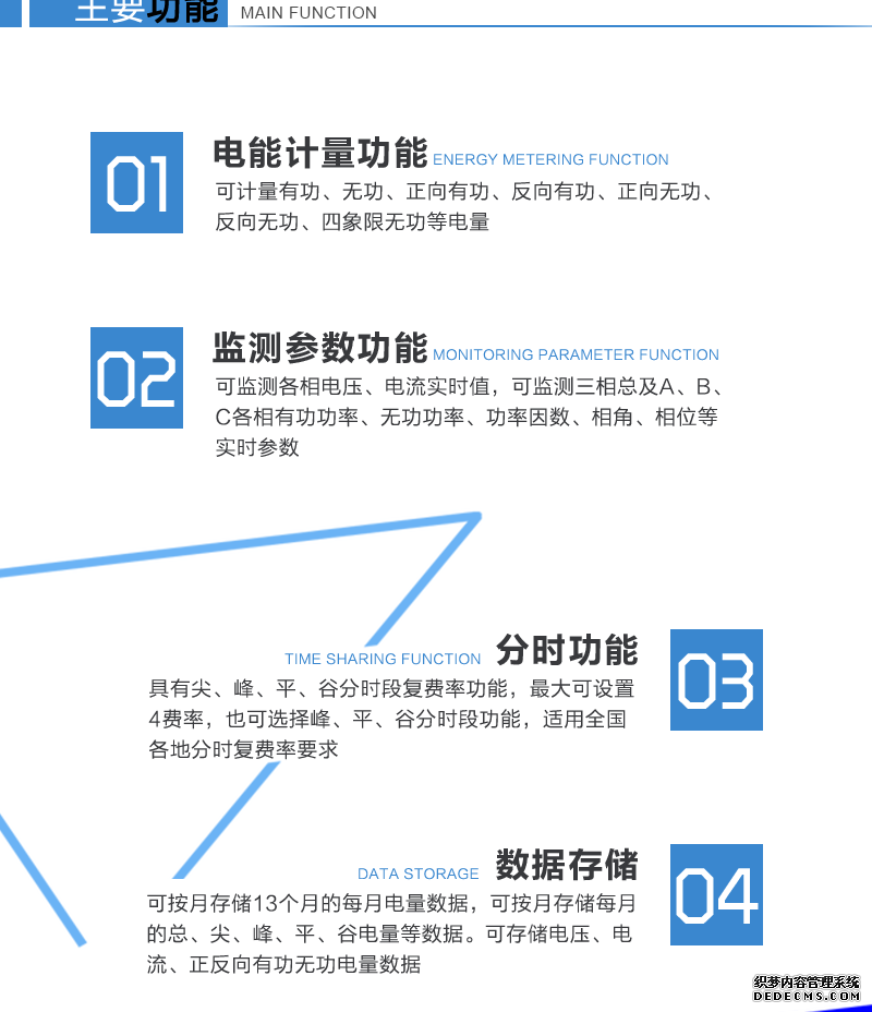 主要功能:有功,功率因素,有功功率,無功功能,視在功率,電壓,電流,事件報警