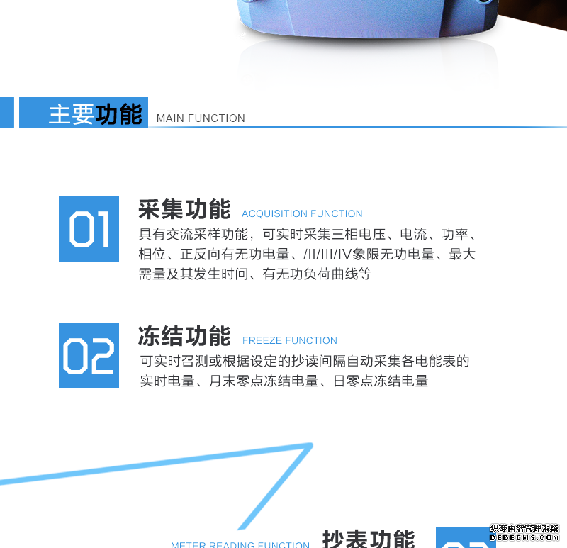 - 主要功能:有功,有功功率,無功功能,四象限無功,電壓,電流