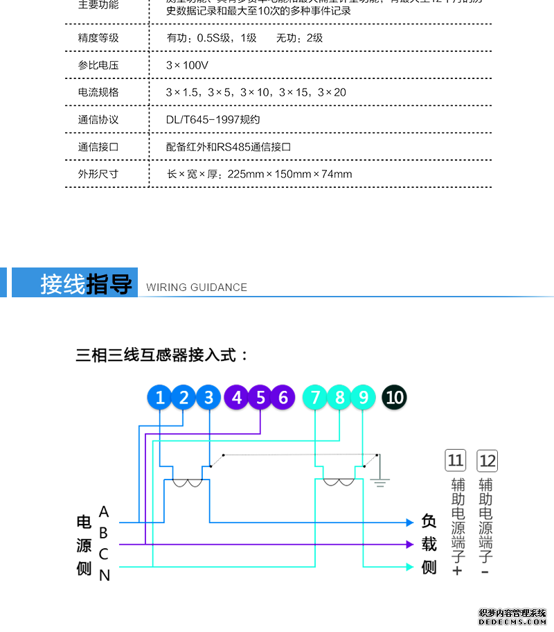 - 主要功能:有功,功率因素,有功功率,無功功能,四象限無功,電壓,電流,事件報警,需量