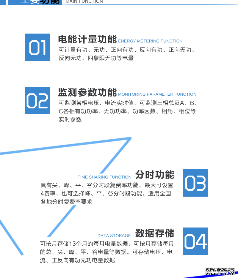 主要功能:有功,功率因素,有功功率,無(wú)功功能,四象限無(wú)功,電壓,電流,事件報(bào)警,載波,費(fèi)控