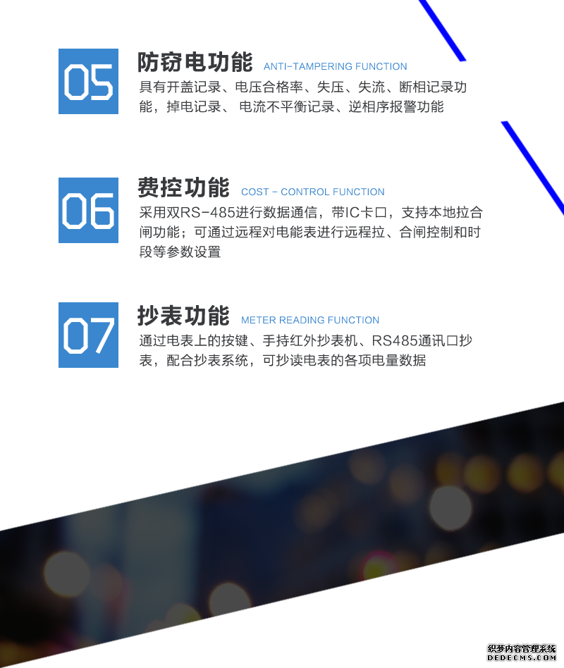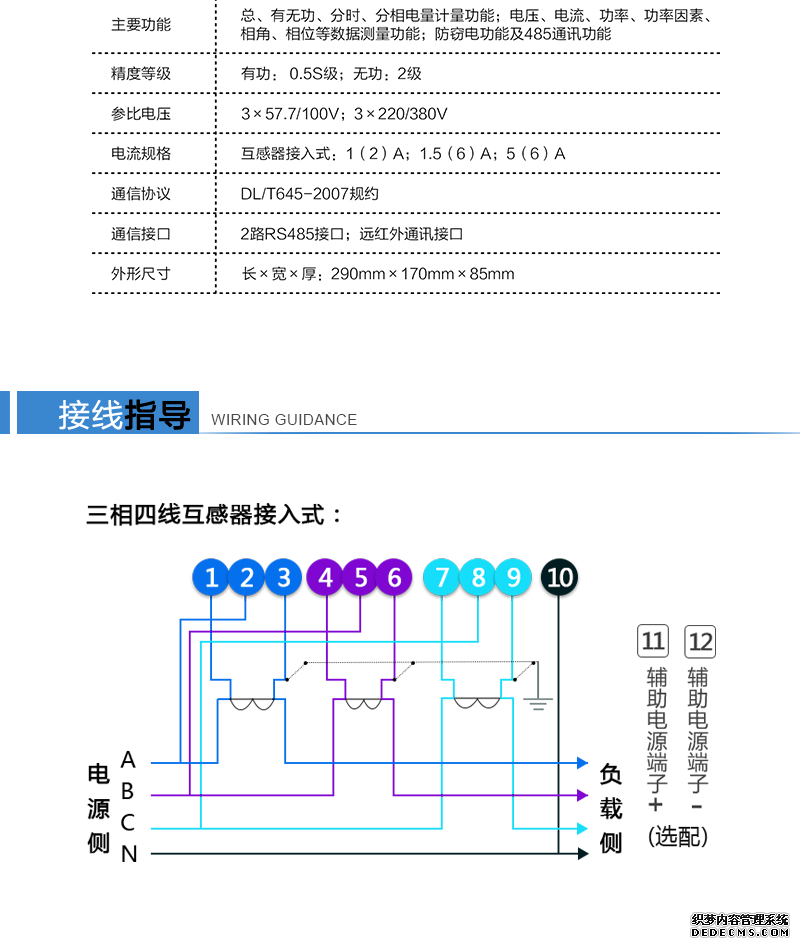- 主要功能:有功,功率因素,有功功率,無功功能,四象限無功,電壓,電流,事件報警,費控