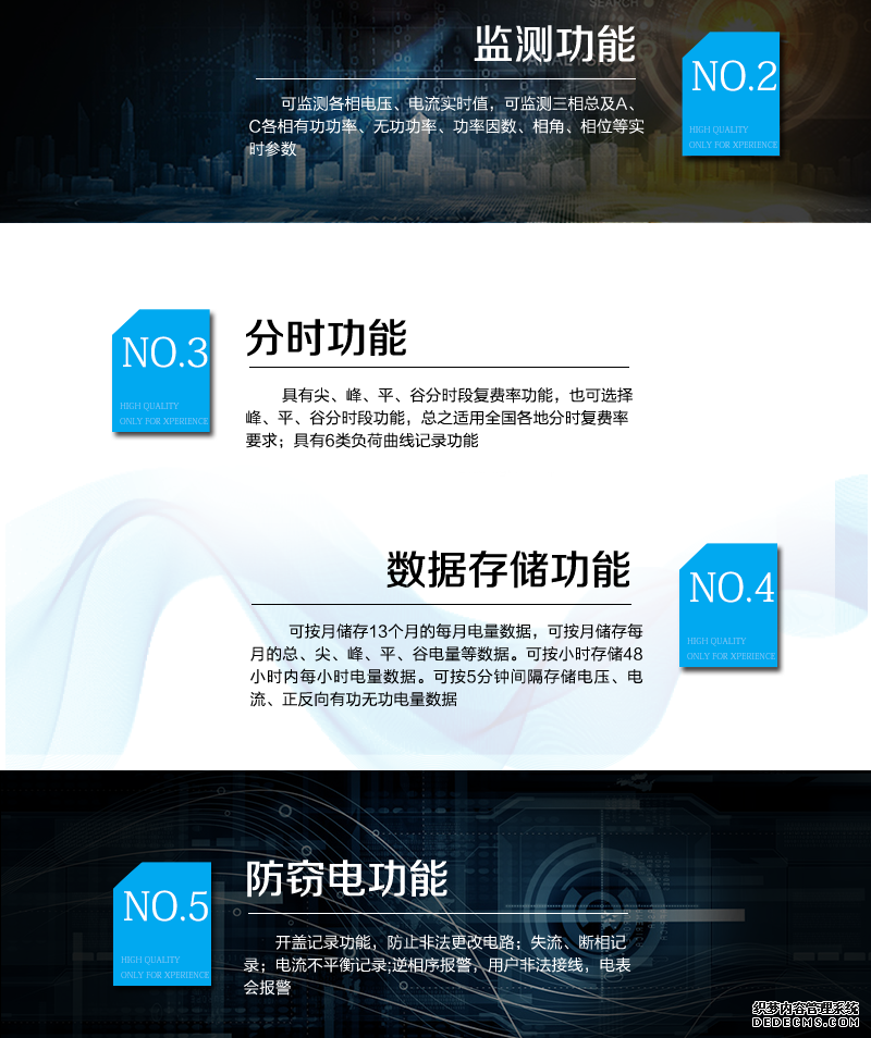 - 主要功能:有功,功率因素,有功功率,無功功能,視在功率,四象限無功,電壓,電流,事件報警,費控,需量