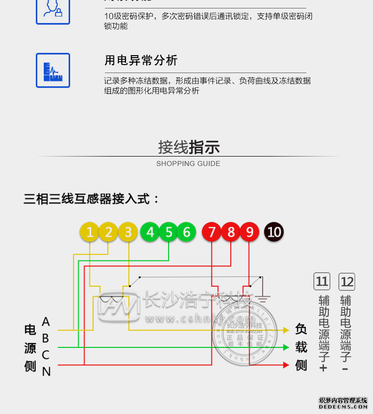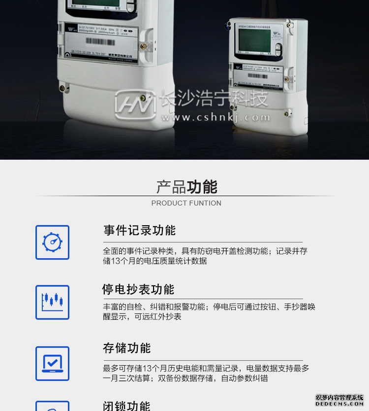 - 主要功能:有功,功率因素,無功功能,四象限無功,電壓,電流,事件報警,需量