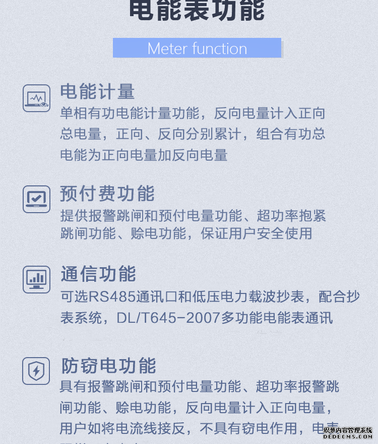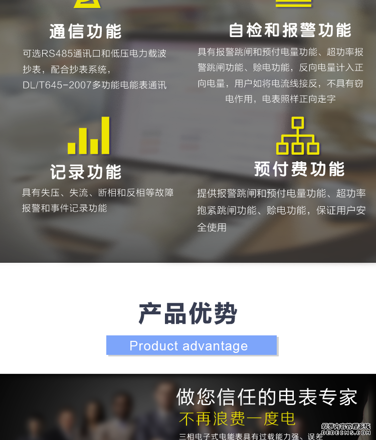 - 主要功能:有功,功率因素,有功功率,無功功能,電壓,電流,事件報警,需量