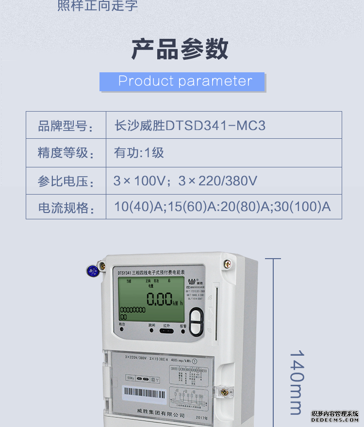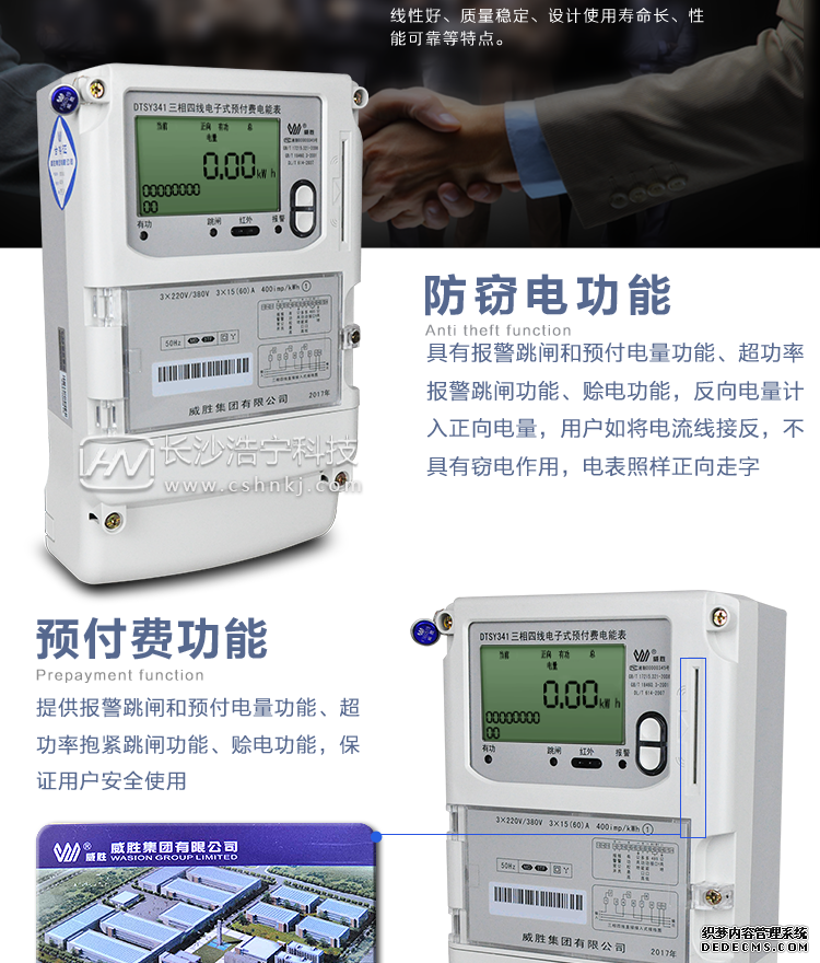 長沙威勝DTSY341-MD3三相四線預付費電能表