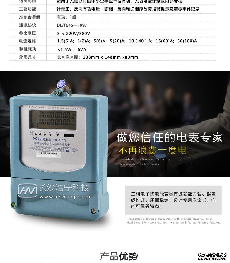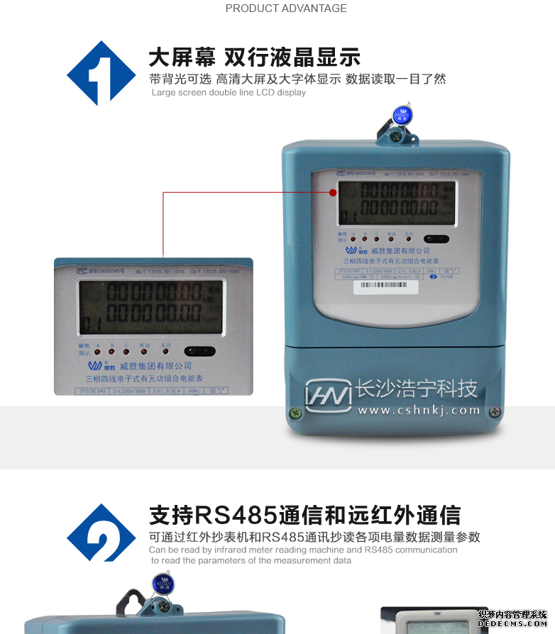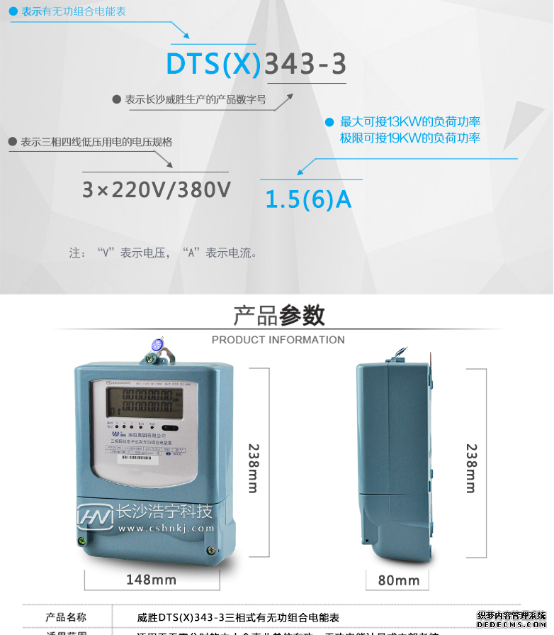 長沙威勝DTS(X)343-3三相四線電子式有無功能組合電能表