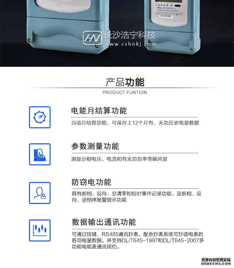 - 主要功能:有功,功率因素,有功功率,無功功能,四象限無功,電壓,電流,事件報警