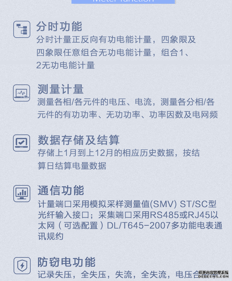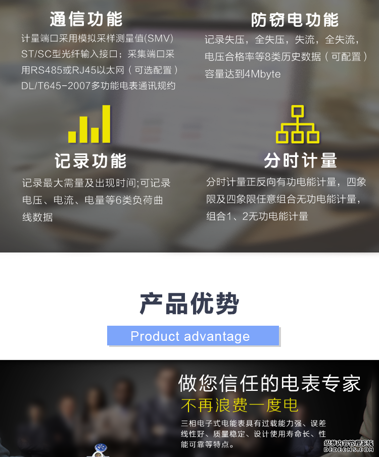 - 主要功能:有功,功率因素,有功功率,無功功能,四象限無功,電壓,電流,事件報警