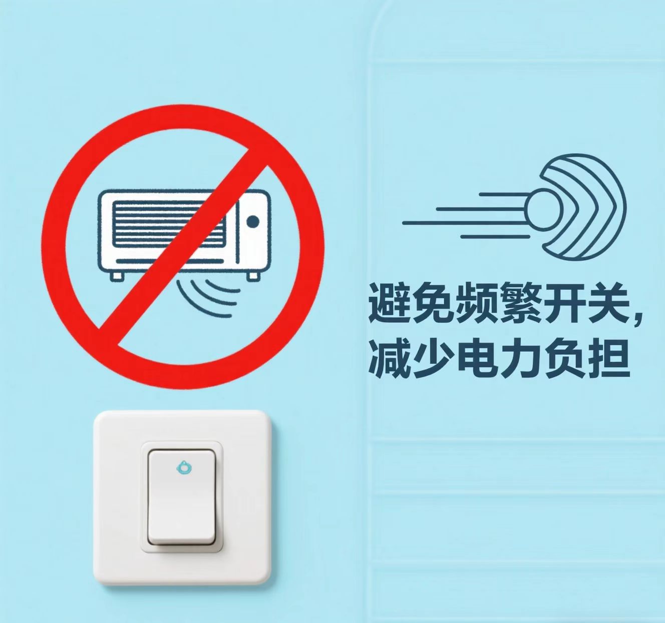 2、空調(diào)啟動的需要的功率和電流是最大的,頻繁開關(guān)不僅不能省電,反而會增加空調(diào)和電力的負(fù)擔(dān)。